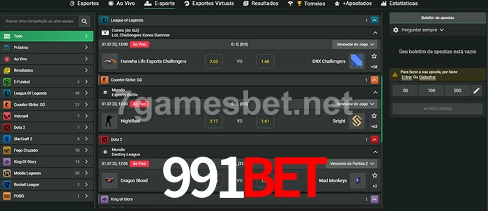 O 991bet oferece uma grande seleção de opções de apostas em e-sports com probabilidades competitivas
